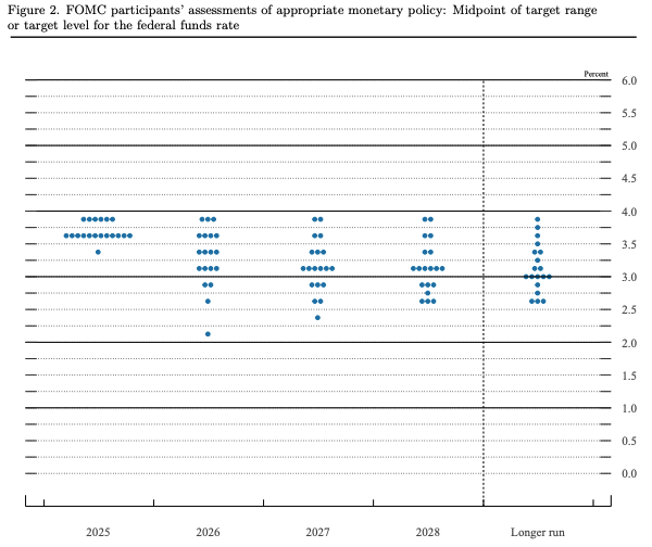 我們可以很清楚地發現,官員們的看法雖然依舊分歧,但「鴿派」陣營顯著萎縮。12 月份尚有 4 位委員認為利率可降至 3% 以下,但到了 3 月,絕大多數委員都認為利率應維持在 3.25% 以上。鮑爾在記者會中也直言,由於油價受戰爭影響飆升,通膨風險已不容忽視。