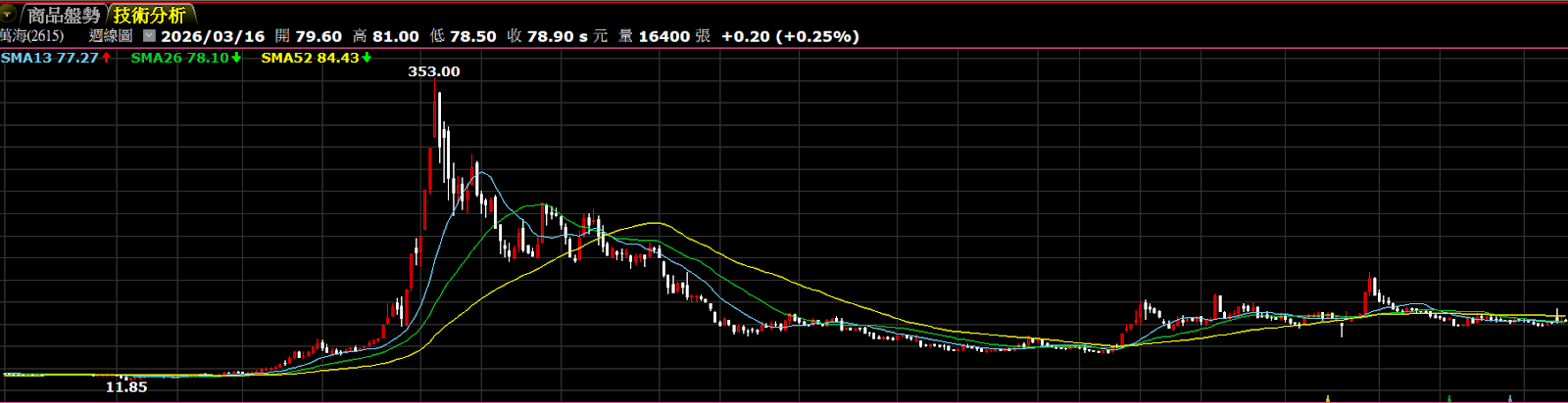 就好比在 2021 年 6 月多那一波,可能有一些新手買在 300 多塊的萬海股票,放到現在的話,股價可能只剩下 70 幾元。
