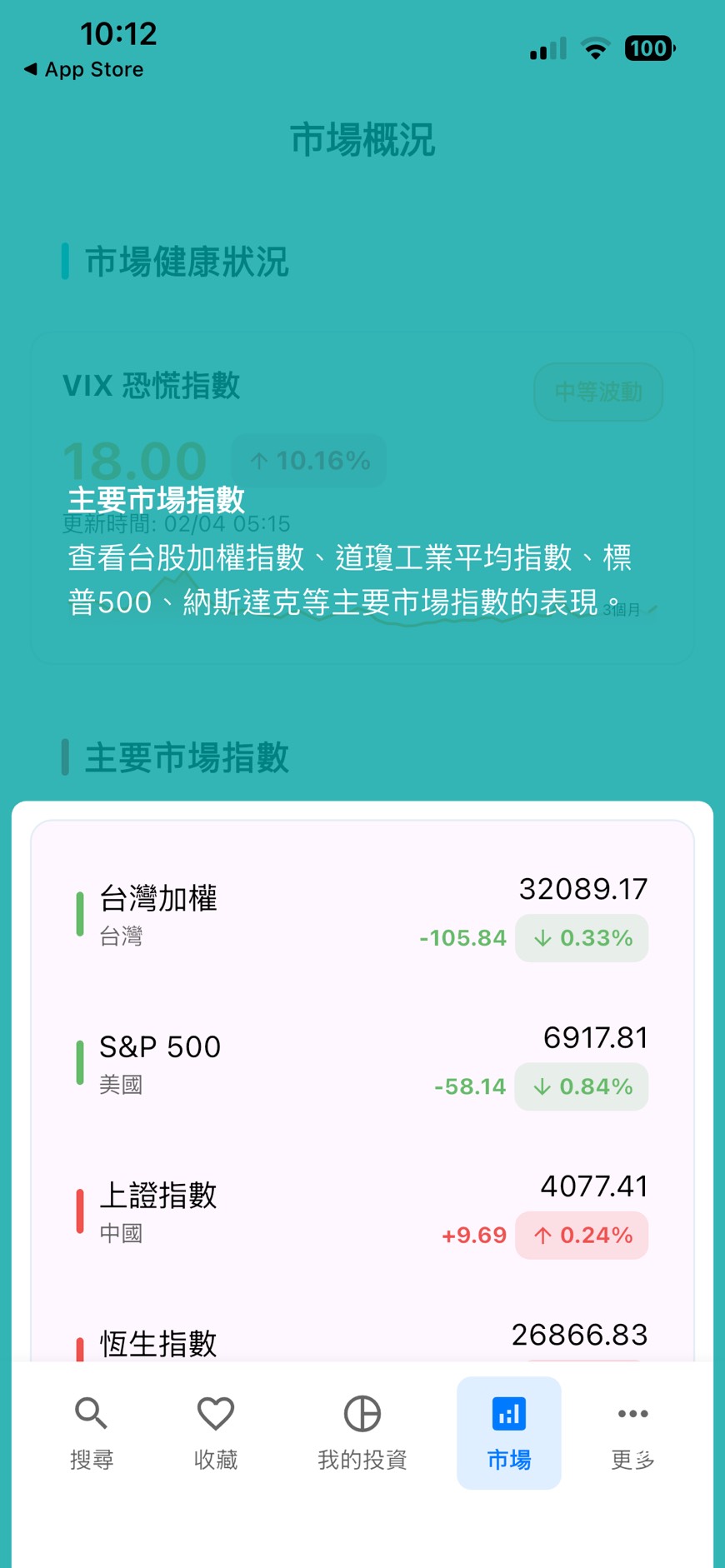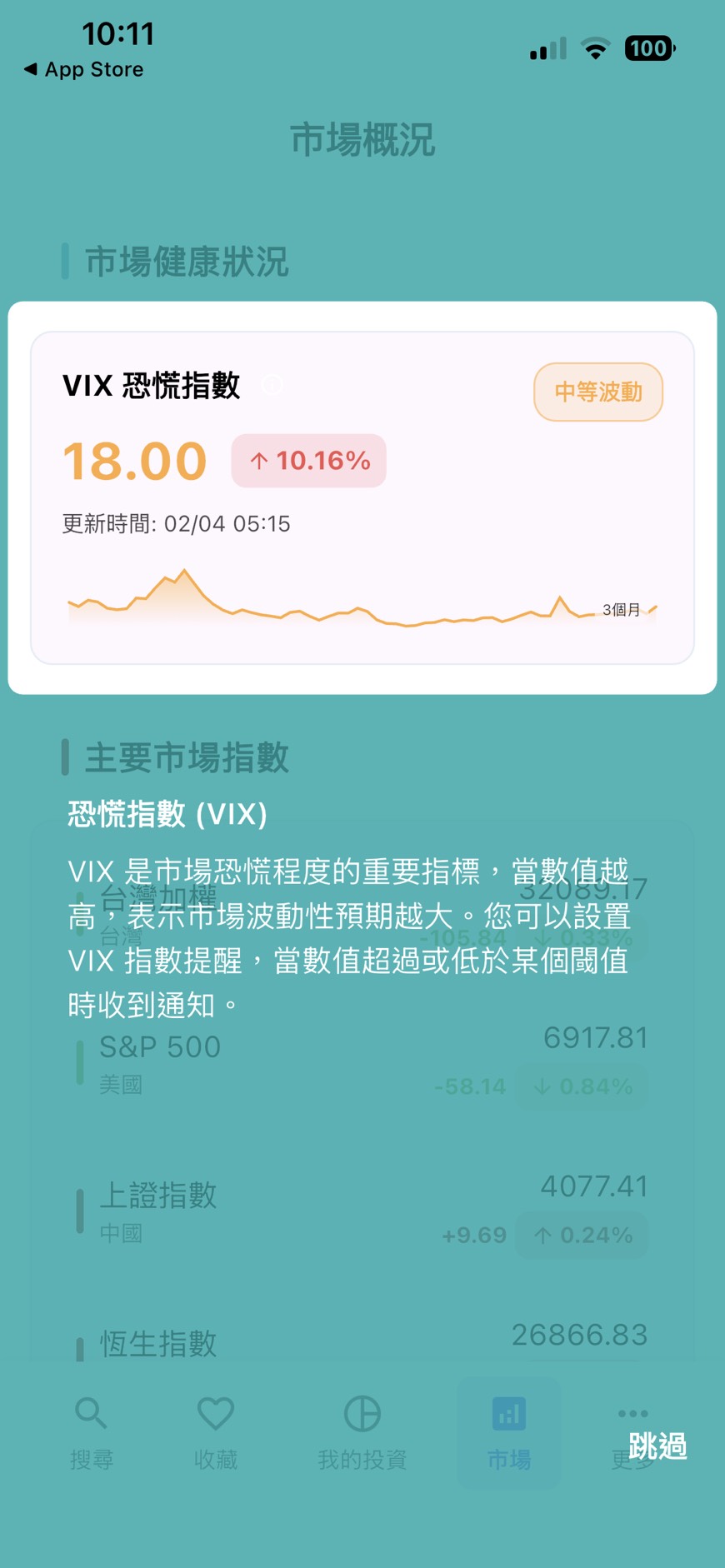 - VIX 恐慌指數動態:App 內建 VIX 走勢分析,並標註「高波動」與「低波動」區間。當 VIX 異常升高時,系統會提醒使用者市場情緒正陷入恐慌,此時往往是檢視風險控管的最佳時機。