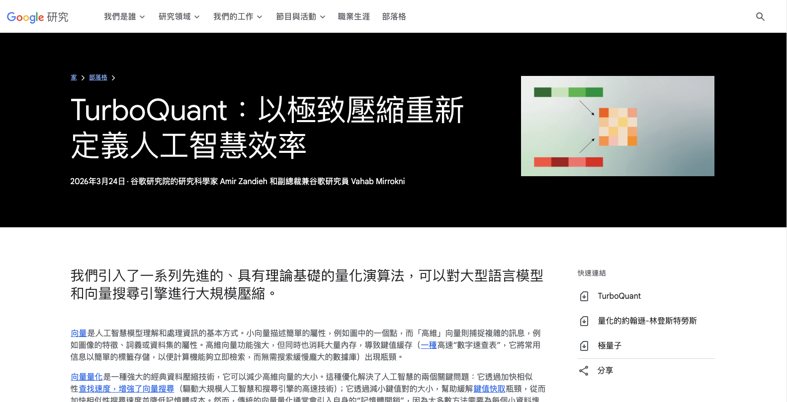 附上 TurboQuant 官方技術部落格: